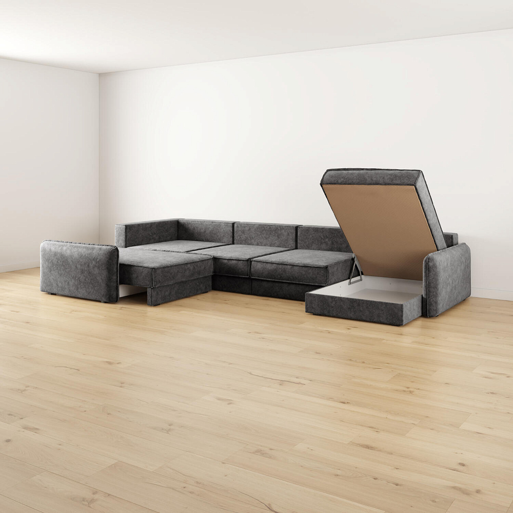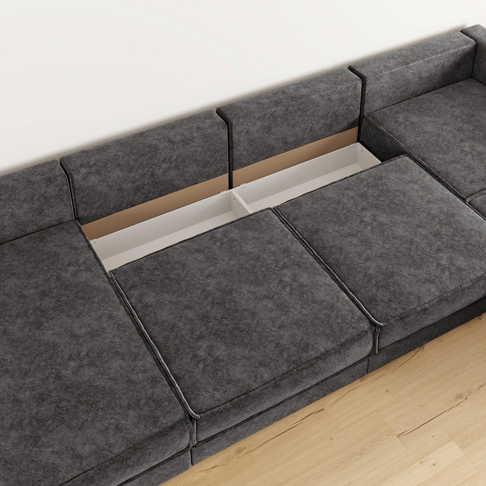 - Два короба для белья. В диване и оттоманке предусмотрены просторные коробы для хранения постельных принадлежностей и других вещей.