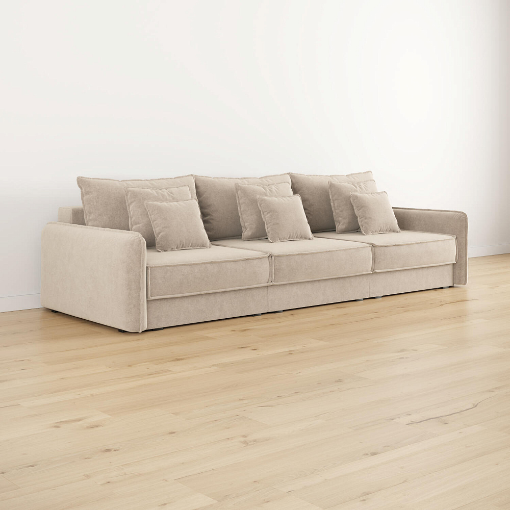 - Девять подушек в комплекте. 3 приспинных и 6 декоративных подушек разных размеров позволят скорректировать глубину посадки.