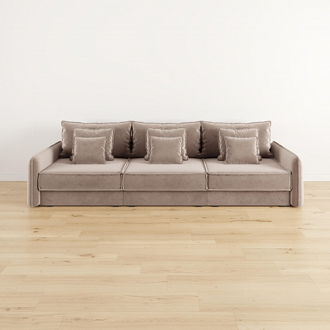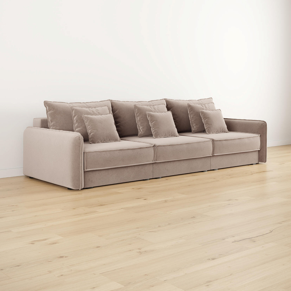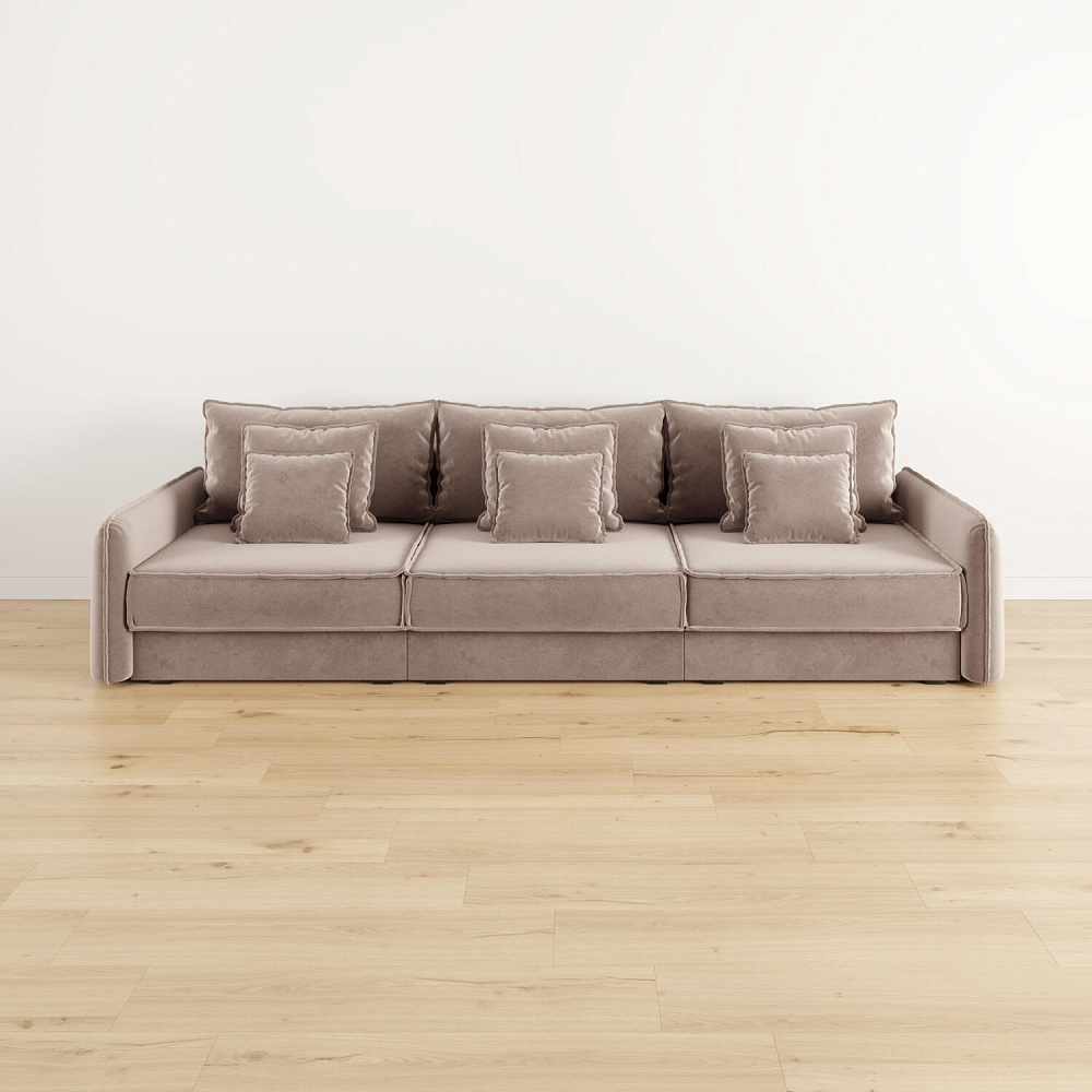 - Девять подушек в комплекте. 3 приспинных и 6 декоративных подушек разных размеров позволят скорректировать глубину посадки.