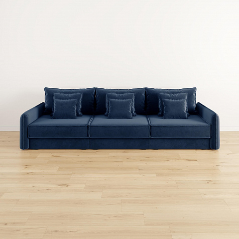 - Девять подушек в комплекте. 3 приспинных и 6 декоративных подушек разных размеров позволят скорректировать глубину посадки.