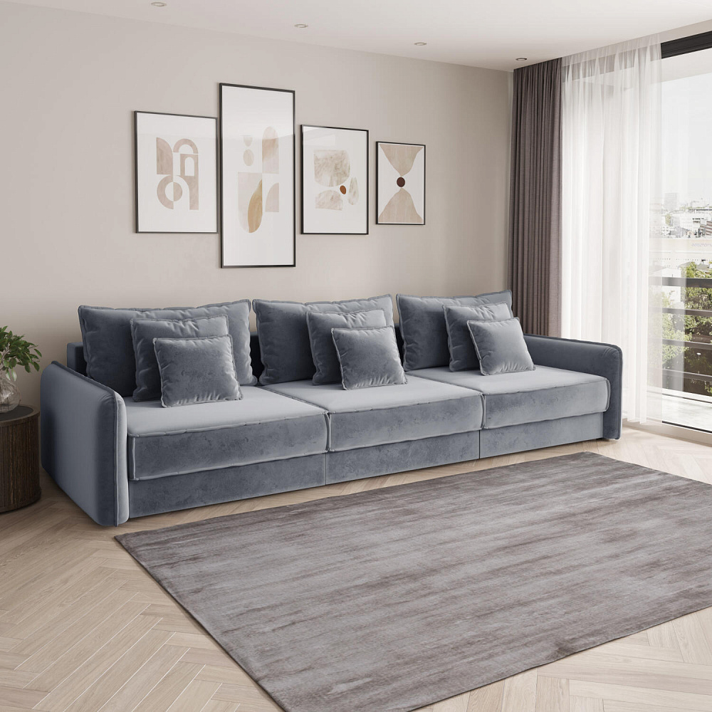 - Размер спального места — 300 х 167 см. Диван легко трансформируется в полноценное спальное место для сна и отдыха двух человек.