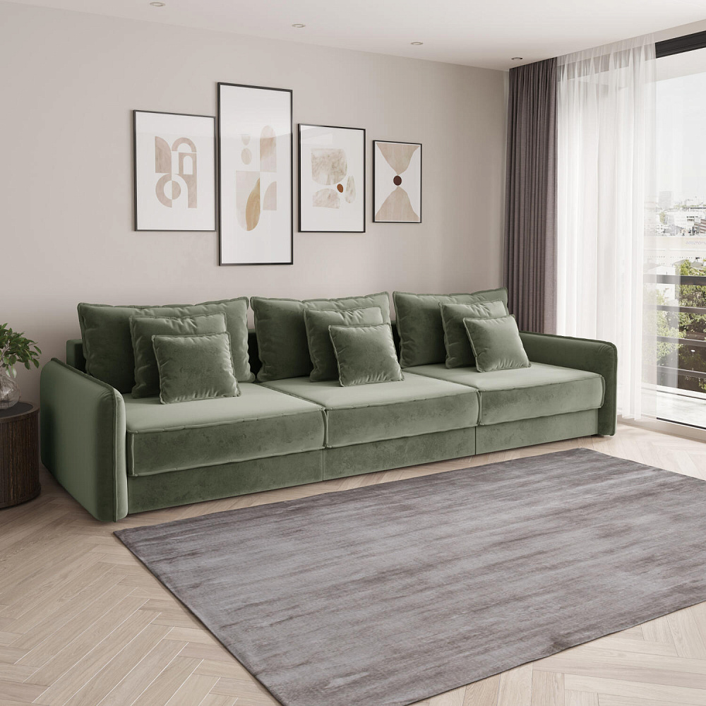 - Размер спального места — 300 х 167 см. Диван легко трансформируется в полноценное спальное место для сна и отдыха двух человек.