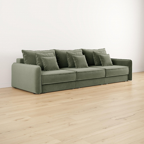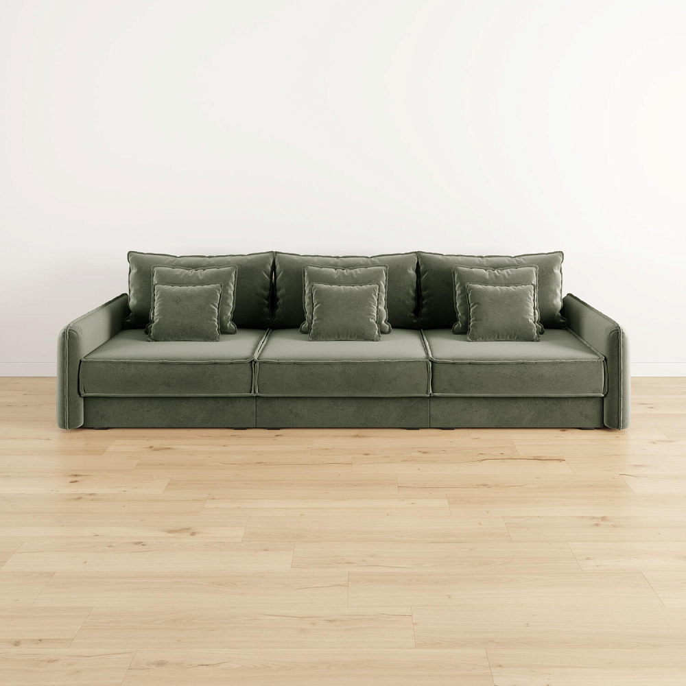 - Девять подушек в комплекте. 3 приспинных и 6 декоративных подушек разных размеров позволят скорректировать глубину посадки.