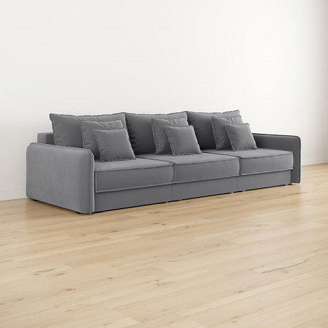 - Девять подушек в комплекте. 3 приспинных и 6 декоративных подушек разных размеров позволят скорректировать глубину посадки.
