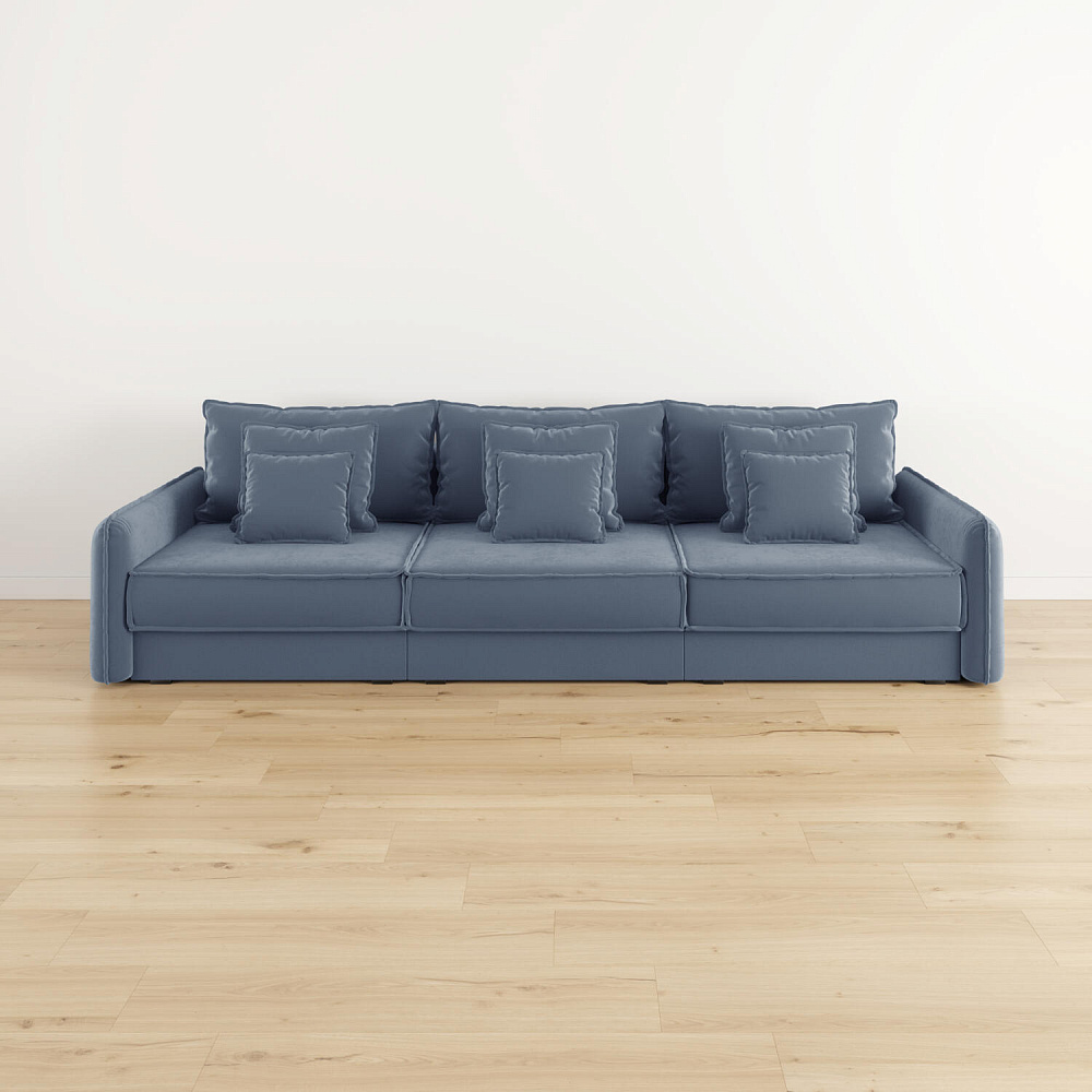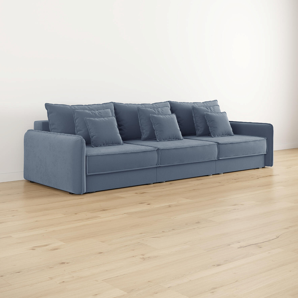 - Девять подушек в комплекте. 3 приспинных и 6 декоративных подушек разных размеров позволят скорректировать глубину посадки.