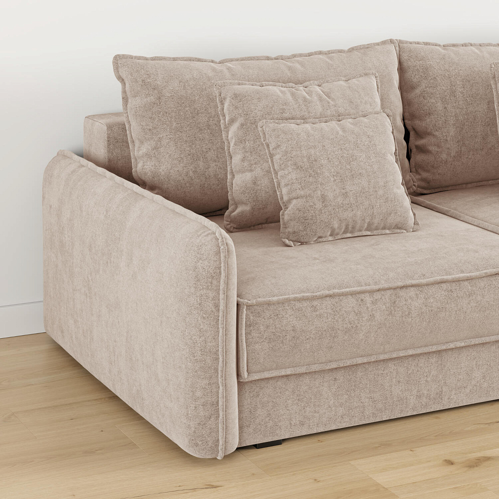 - Девять подушек в комплекте. 3 приспинных и 6 декоративных подушек разных размеров позволят скорректировать глубину посадки.