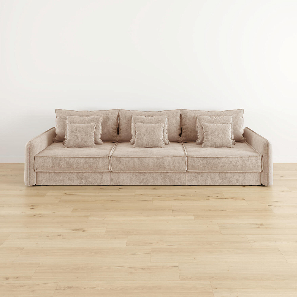 - Девять подушек в комплекте. 3 приспинных и 6 декоративных подушек разных размеров позволят скорректировать глубину посадки.