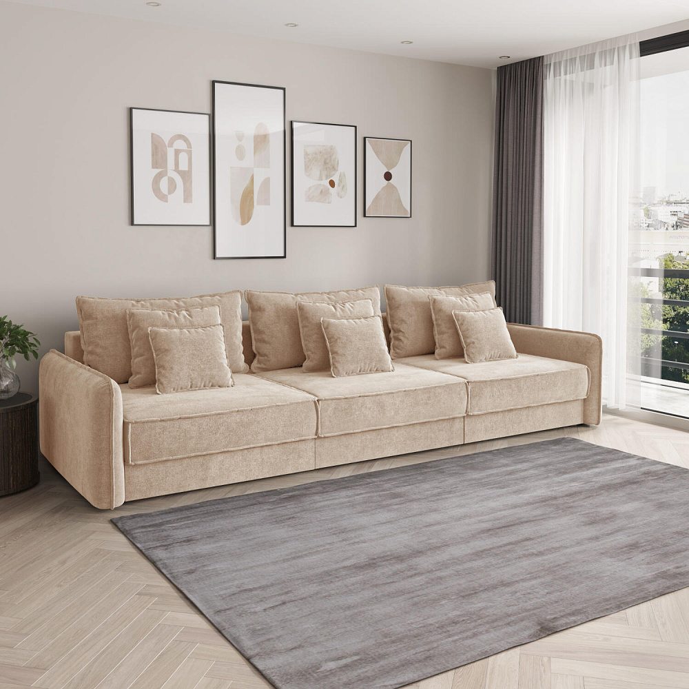 - Размер спального места — 300 х 167 см. Диван легко трансформируется в полноценное спальное место для сна и отдыха двух человек.