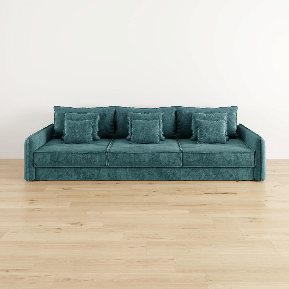 - Девять подушек в комплекте. 3 приспинных и 6 декоративных подушек разных размеров позволят скорректировать глубину посадки.