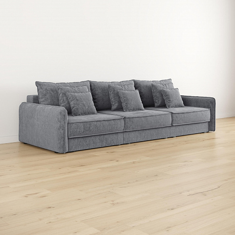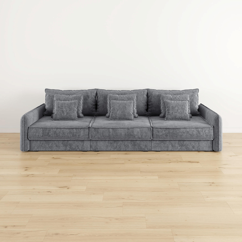 - Девять подушек в комплекте. 3 приспинных и 6 декоративных подушек разных размеров позволят скорректировать глубину посадки.