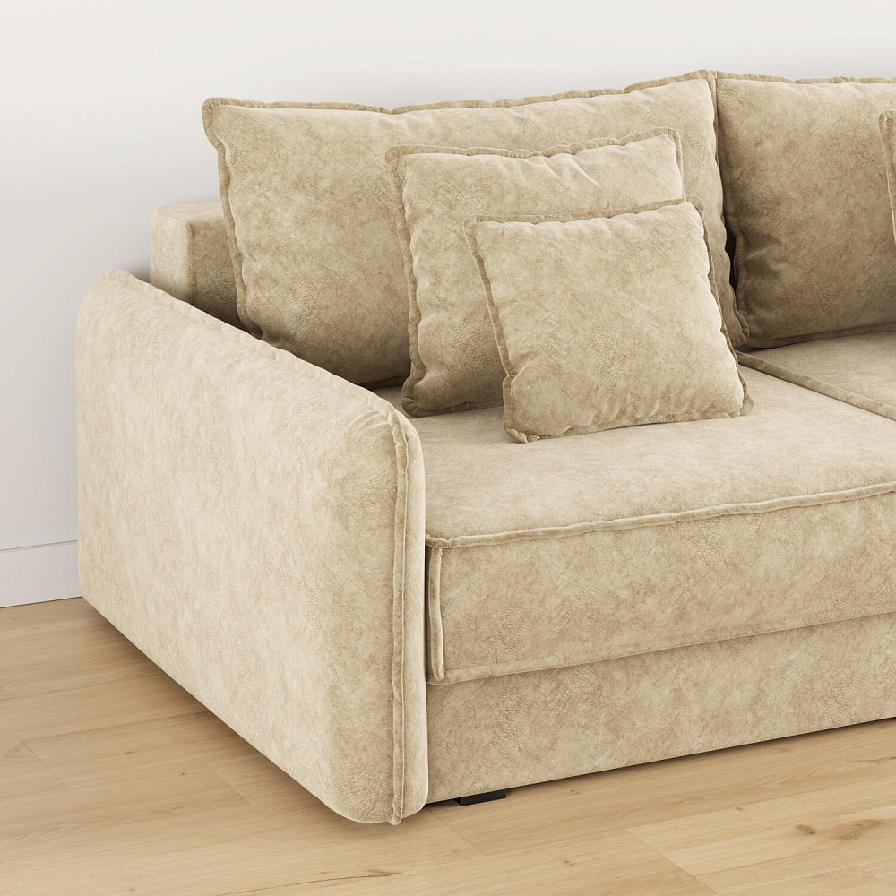 - Размер спального места — 300 х 167 см. Диван легко трансформируется в полноценное спальное место для сна и отдыха двух человек.