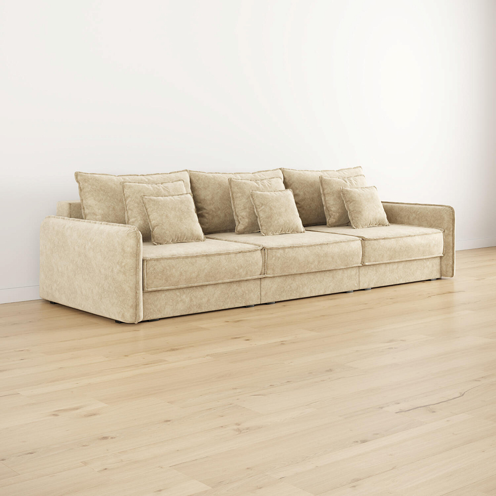 - Девять подушек в комплекте. 3 приспинных и 6 декоративных подушек разных размеров позволят скорректировать глубину посадки.