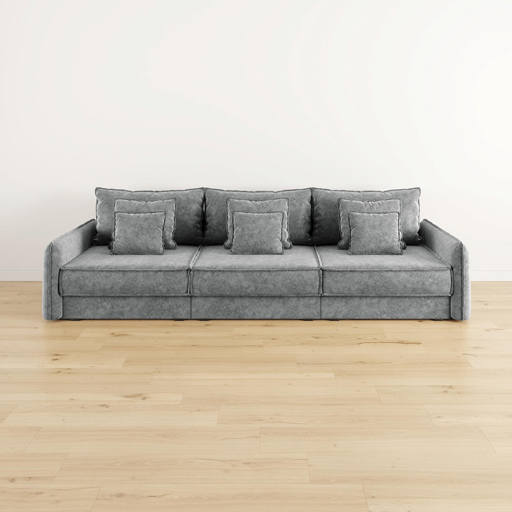 - Девять подушек в комплекте. 3 приспинных и 6 декоративных подушек разных размеров позволят скорректировать глубину посадки.