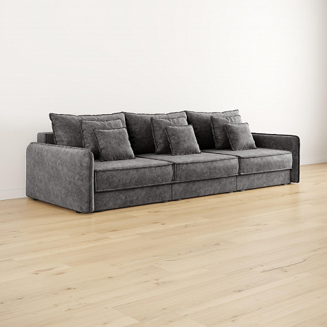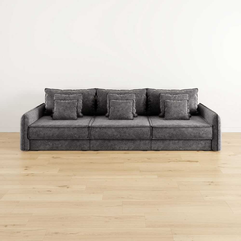 - Девять подушек в комплекте. 3 приспинных и 6 декоративных подушек разных размеров позволят скорректировать глубину посадки.