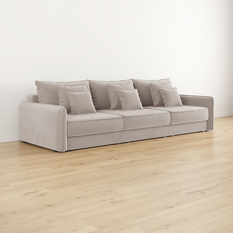 - Девять подушек в комплекте. 3 приспинных и 6 декоративных подушек разных размеров позволят скорректировать глубину посадки.