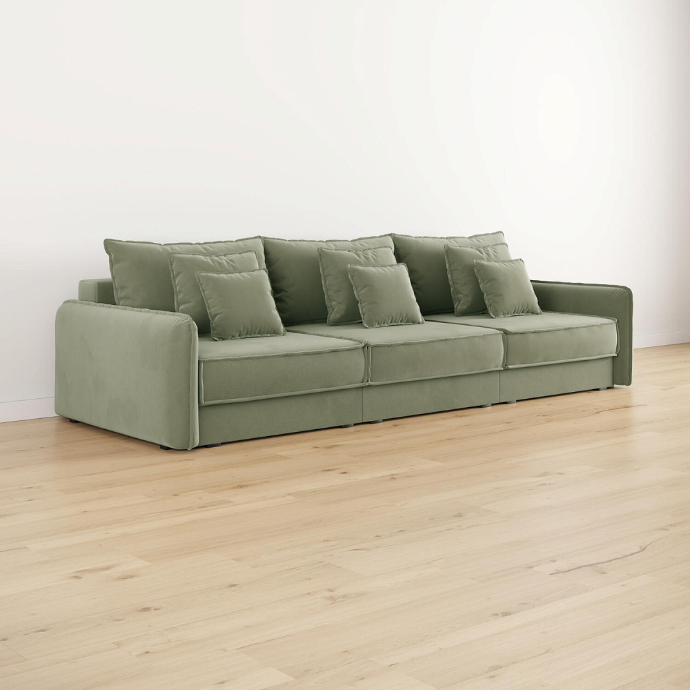 - Девять подушек в комплекте. 3 приспинных и 6 декоративных подушек разных размеров позволят скорректировать глубину посадки.
