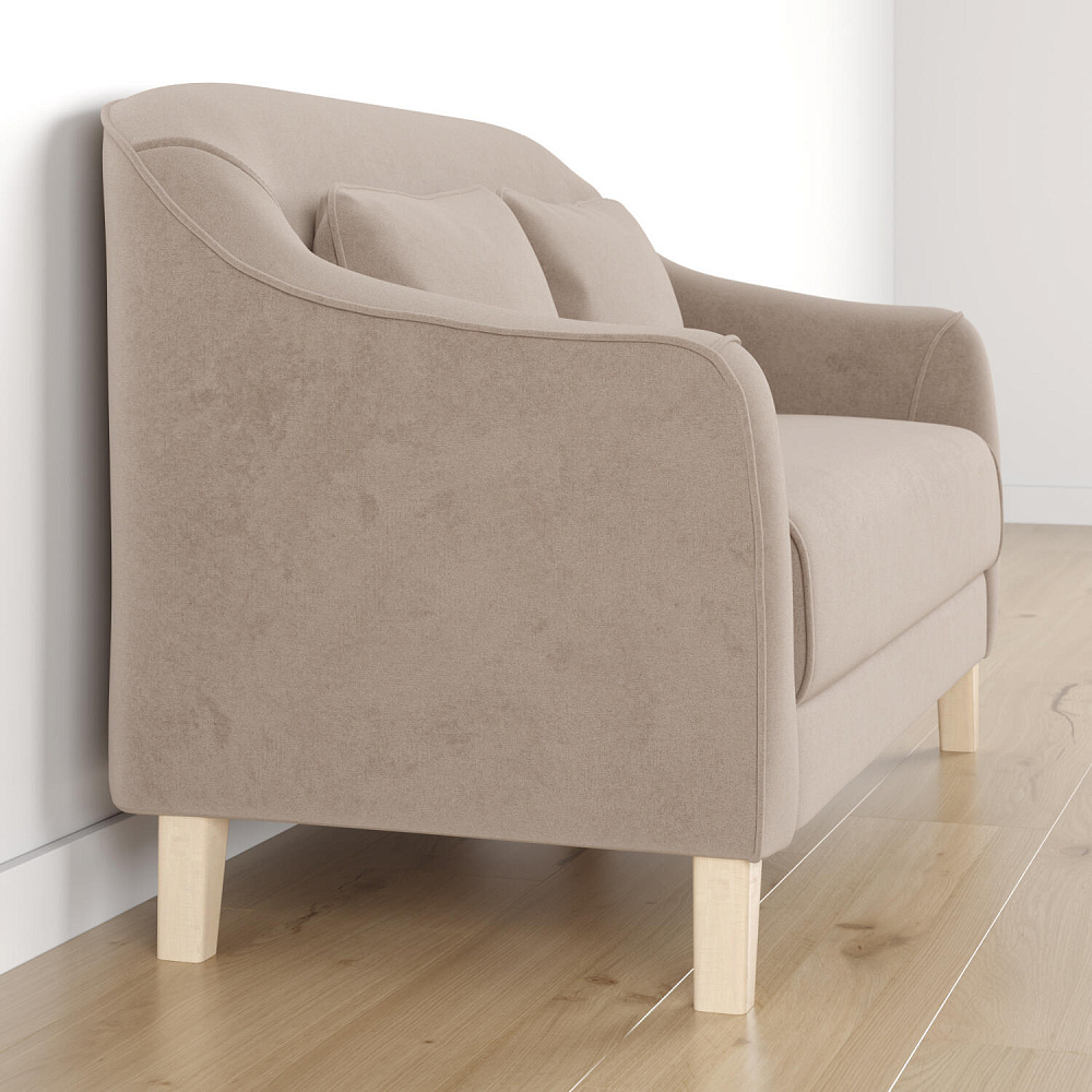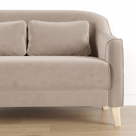 - Деревянные опоры. Высокие ножки из массива березы визуально облегчают конструкцию и открывают доступ к уборке пространства под диваном.