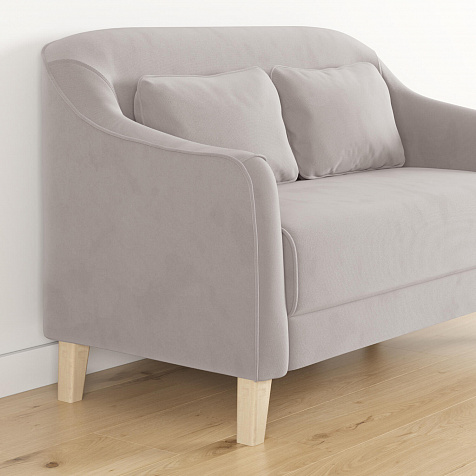 - Деревянные опоры. Высокие ножки из массива березы визуально облегчают конструкцию и открывают доступ к уборке пространства под диваном.