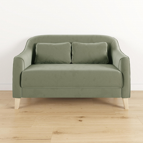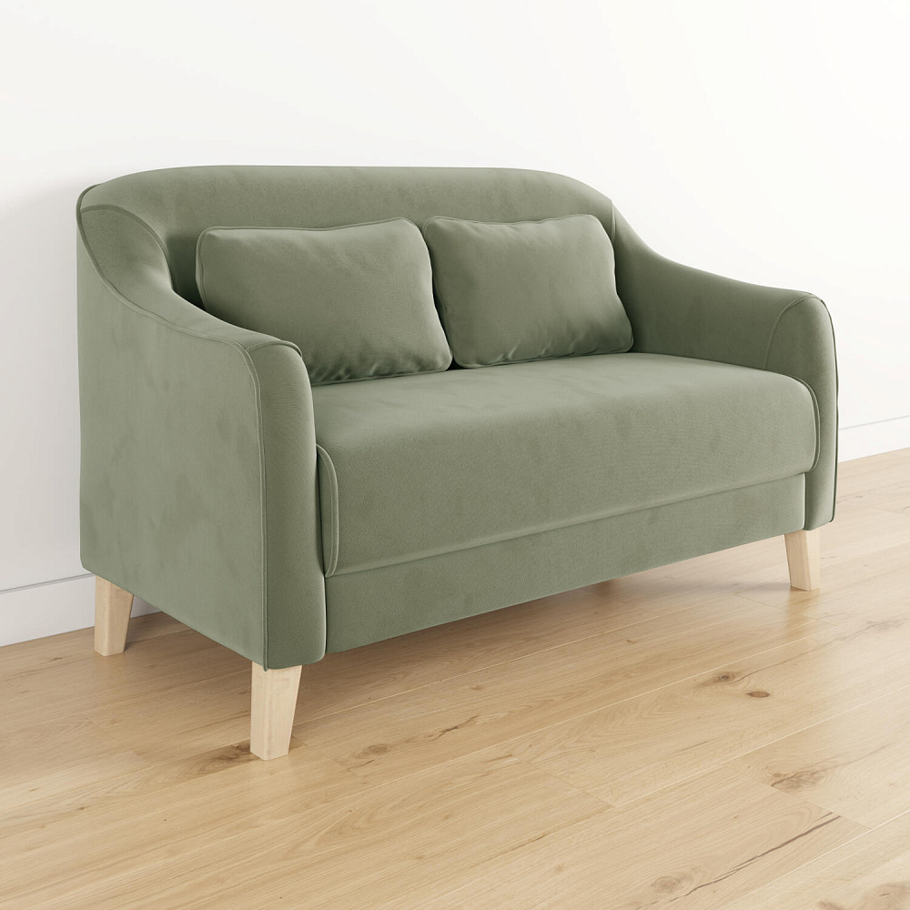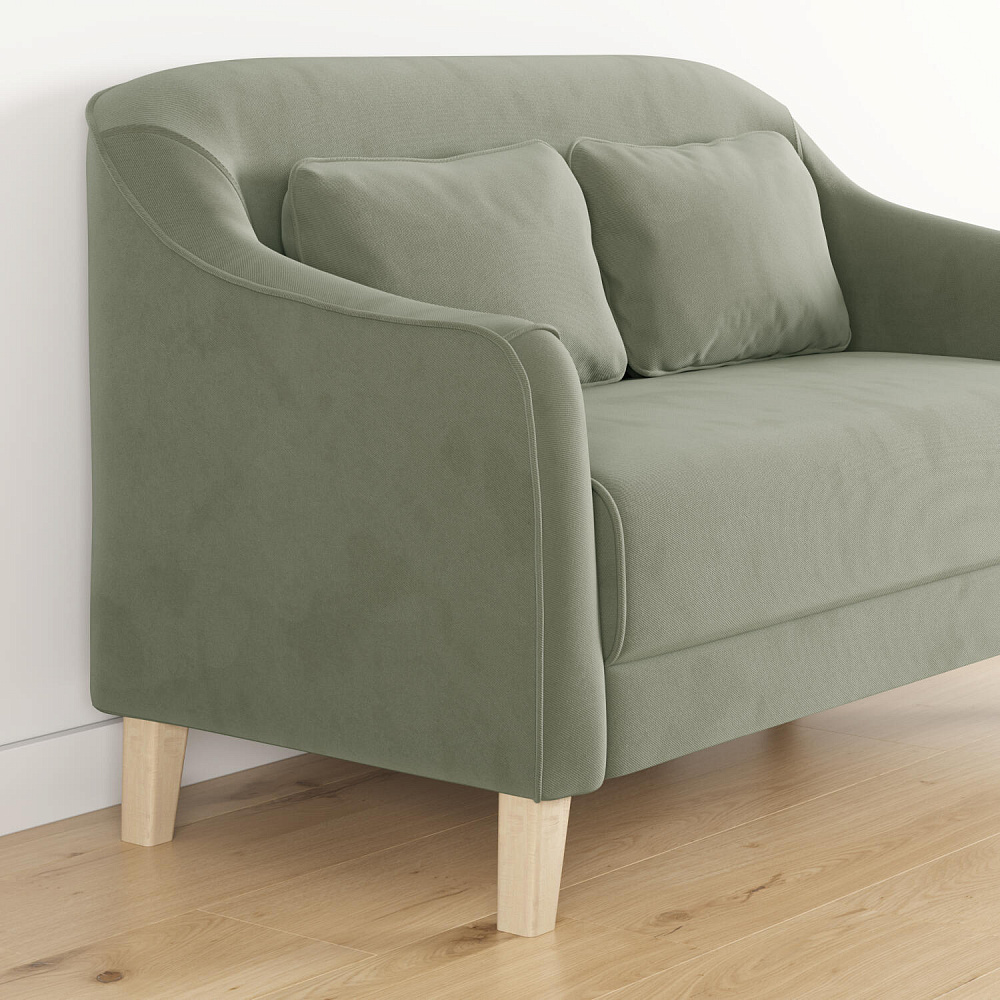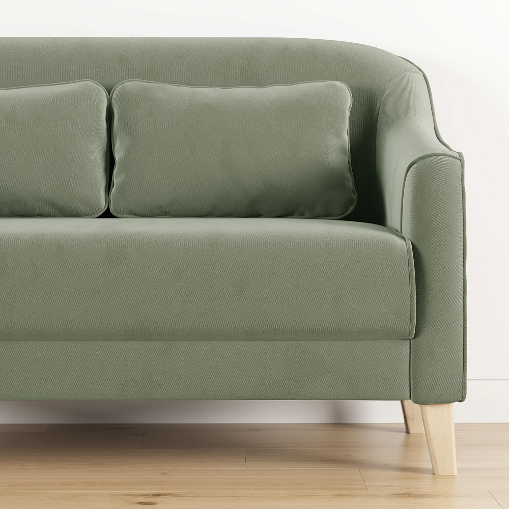 - Деревянные опоры. Высокие ножки из массива березы визуально облегчают конструкцию и открывают доступ к уборке пространства под диваном.