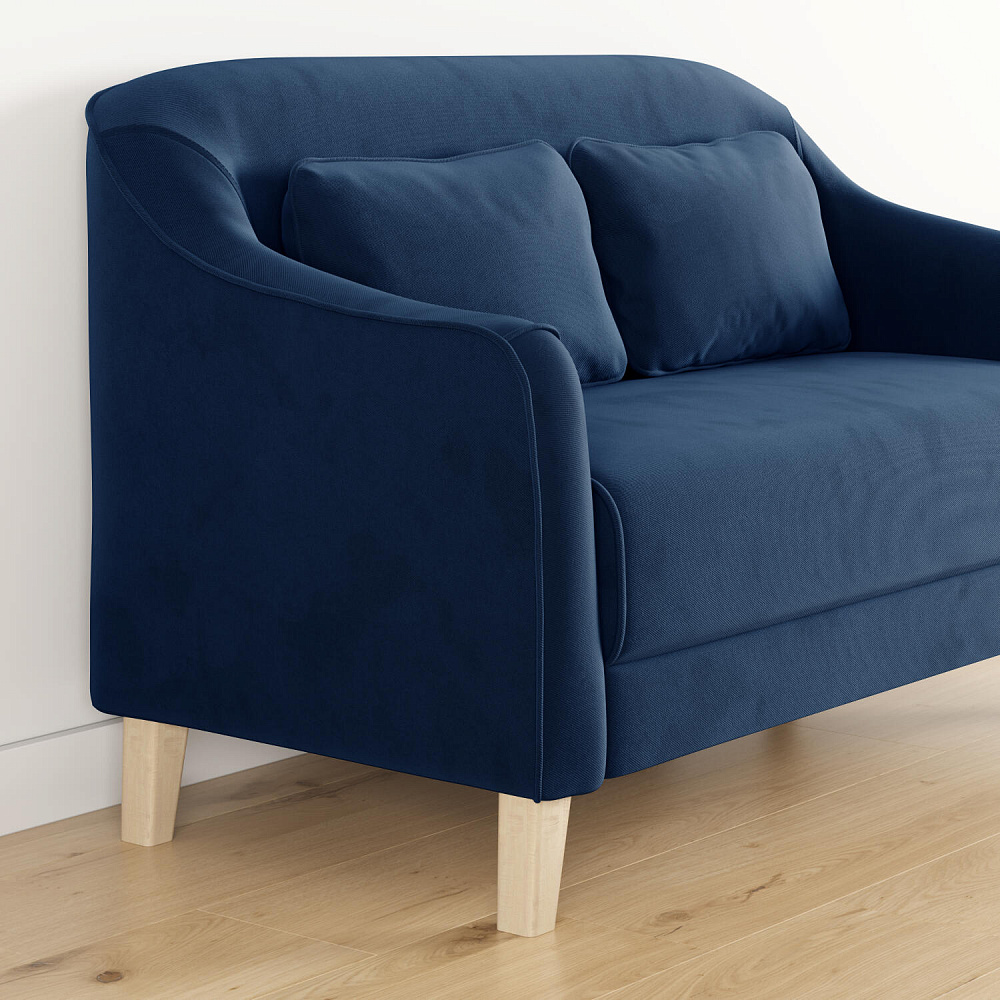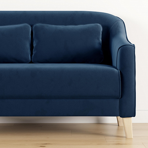 - Деревянные опоры. Высокие ножки из массива березы визуально облегчают конструкцию и открывают доступ к уборке пространства под диваном.