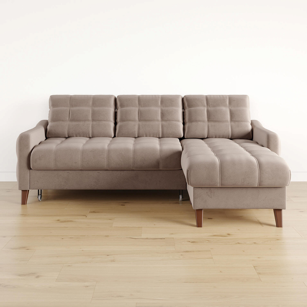 Угловой диван «Бремен» в популярном скандинавском стиле станет функциональным и стильным местом отдыха в доме. Диван с глубокой посадкой оснащён механизмом трансформации и большим бельевым коробом. Высокие опоры и однотонная обивка натурального оттенка добавят в комнату воздуха и лёгкости.