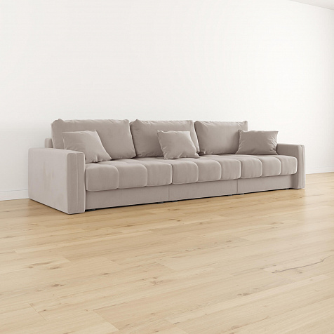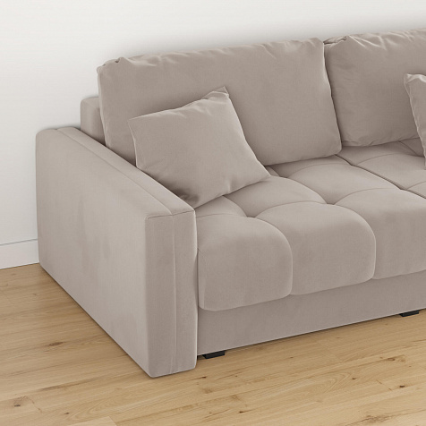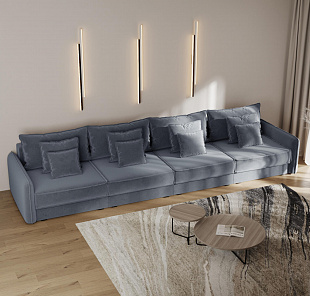 Диван «Дензел» — лучший вариант для ценителей комфорта в сочетании со стильным дизайном. Диван обладает глубокой посадкой, а приспинные и декоративные подушки позволят создать самое удобное место для отдыха. Спинка дивана выполнена в той же обивке, что и основная часть, что даёт возможность использовать диван для зонирования комнаты.