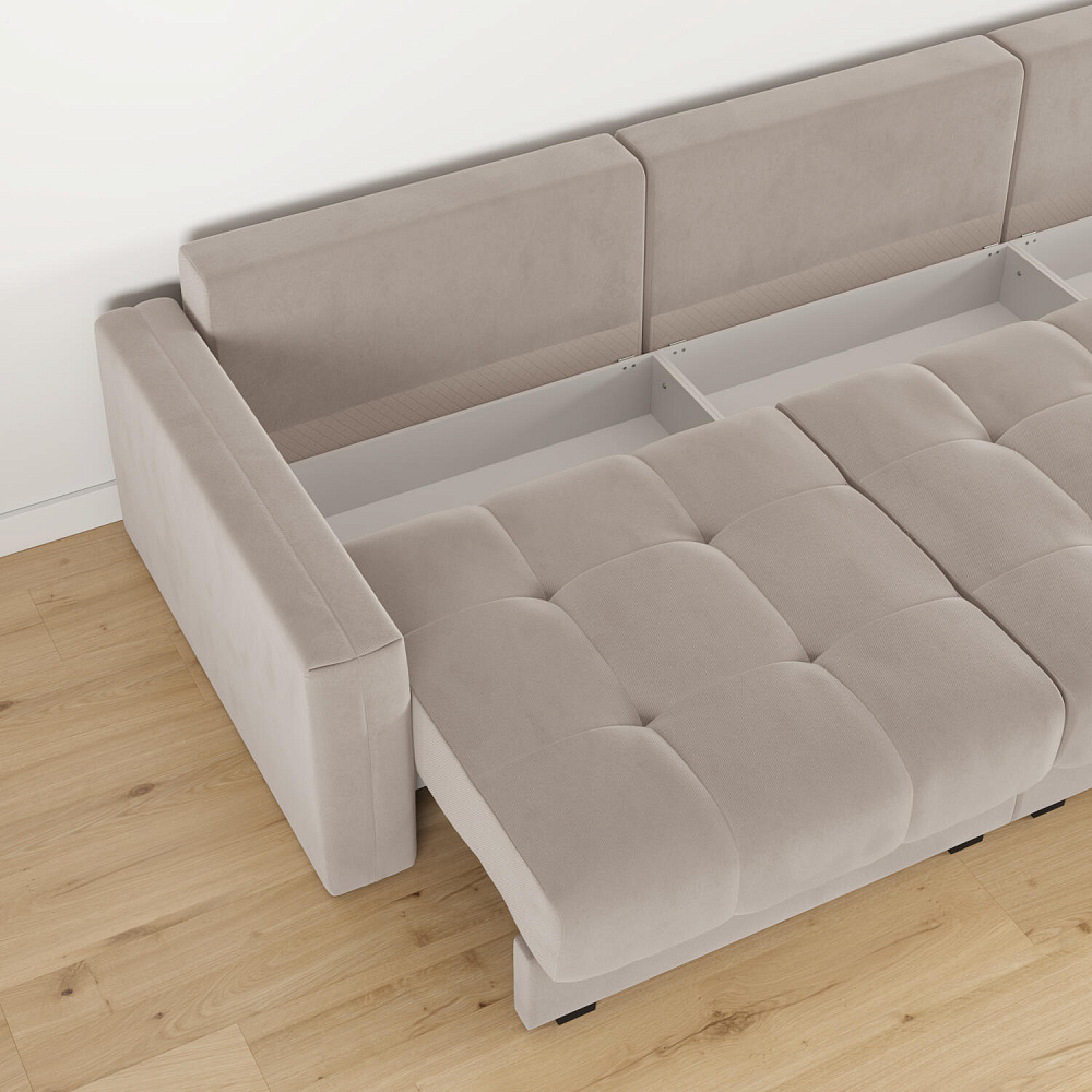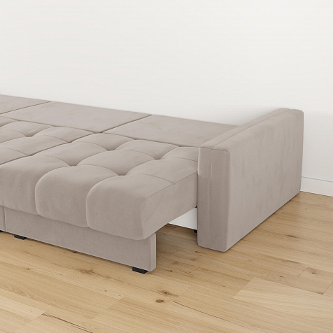 - Размер спального места — 300 х 167 см. Диван легко трансформируется в полноценное двуспальное место.