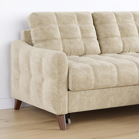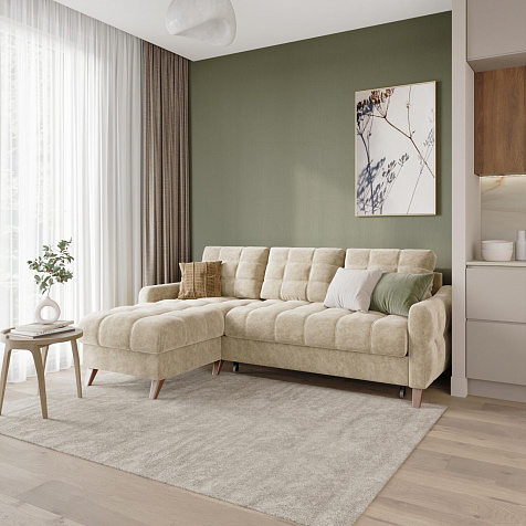 Угловой диван «Бремен» в популярном скандинавском стиле станет функциональным и стильным местом отдыха в доме. Диван с глубокой посадкой оснащён механизмом трансформации и большим бельевым коробом. Высокие опоры и однотонная обивка натурального оттенка добавят в комнату воздуха и лёгкости.
