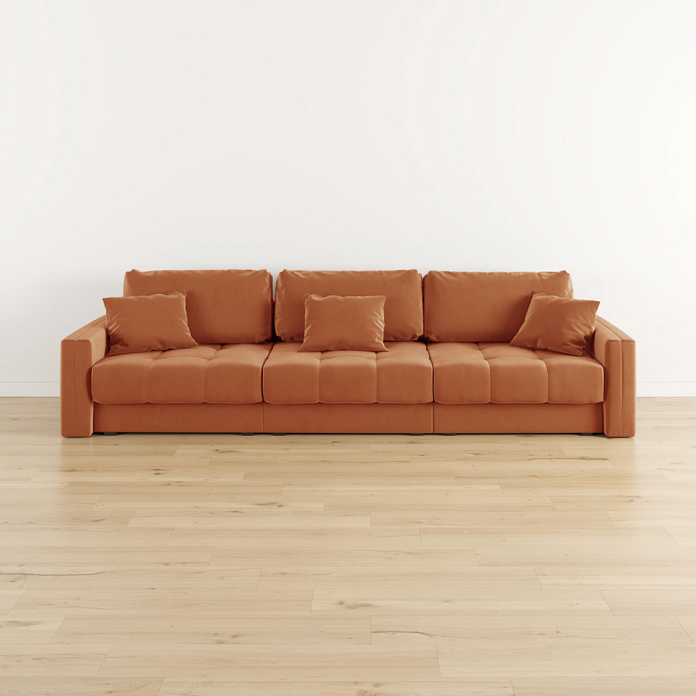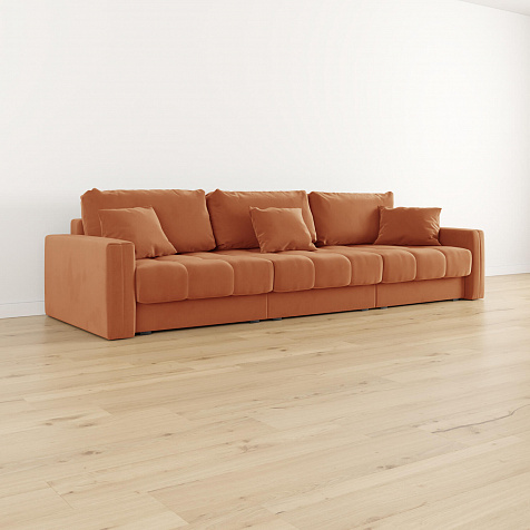 Диван «Дензел» — лучший вариант для ценителей комфорта в сочетании со стильным дизайном. Диван обладает глубокой посадкой, а приспинные и декоративные подушки позволят создать самое удобное место для отдыха. Спинка дивана выполнена в той же обивке, что и основная часть, что даёт возможность использовать диван для зонирования комнаты.