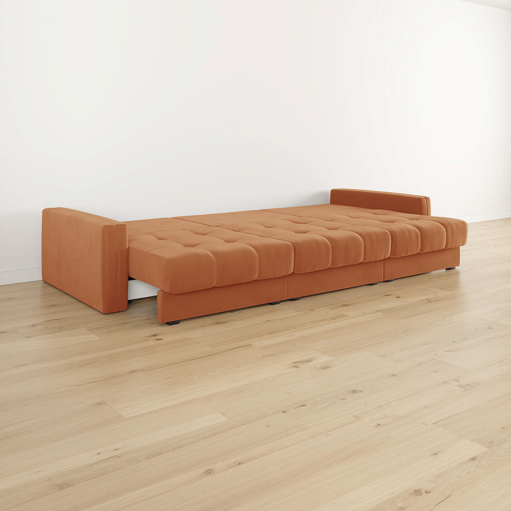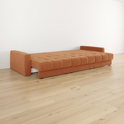 - Размер спального места — 300 х 167 см. Диван легко трансформируется в полноценное двуспальное место.