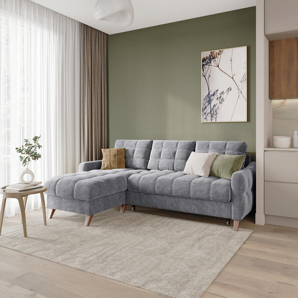Универсальный угол. Диван подстроится под условия помещения - оттоманка устанавливается как слева, так и справа.