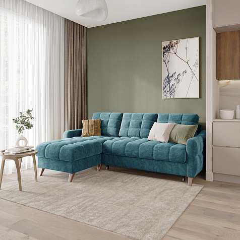 Универсальный угол. Диван подстроится под условия помещения - оттоманка устанавливается как слева, так и справа.