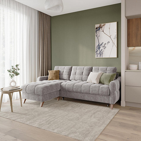 Универсальный угол. Диван подстроится под условия помещения - оттоманка устанавливается как слева, так и справа.