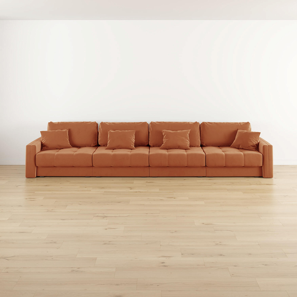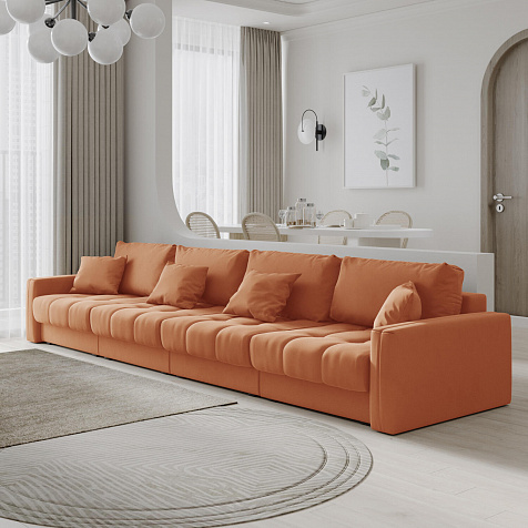 Диван «Дензел» — лучший вариант для ценителей комфорта в сочетании со стильным дизайном. Диван обладает глубокой посадкой, а приспинные и декоративные подушки позволят создать самое удобное место для отдыха. Спинка дивана выполнена в той же обивке, что и основная часть, что даёт возможность использовать диван для зонирования комнаты.