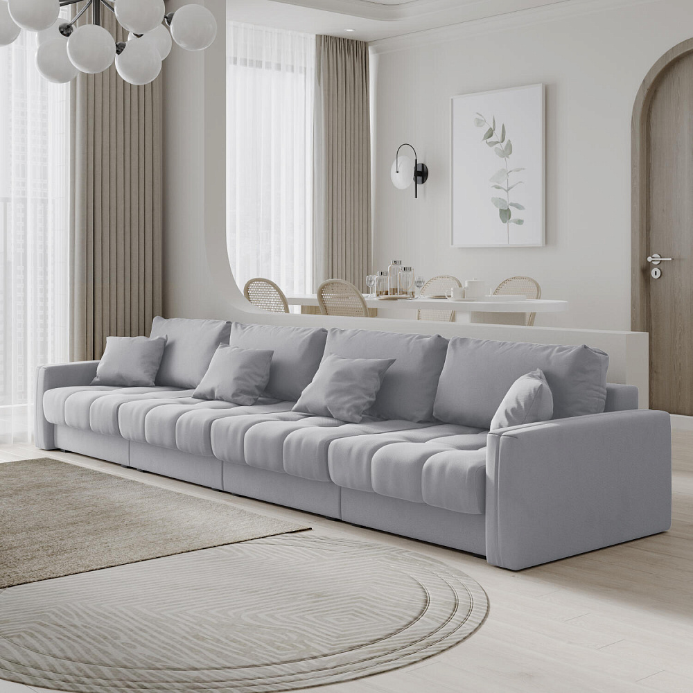 Диван «Дензел» — лучший вариант для ценителей комфорта в сочетании со стильным дизайном. Диван обладает глубокой посадкой, а приспинные и декоративные подушки позволят создать самое удобное место для отдыха. Спинка дивана выполнена в той же обивке, что и основная часть, что даёт возможность использовать диван для зонирования комнаты.