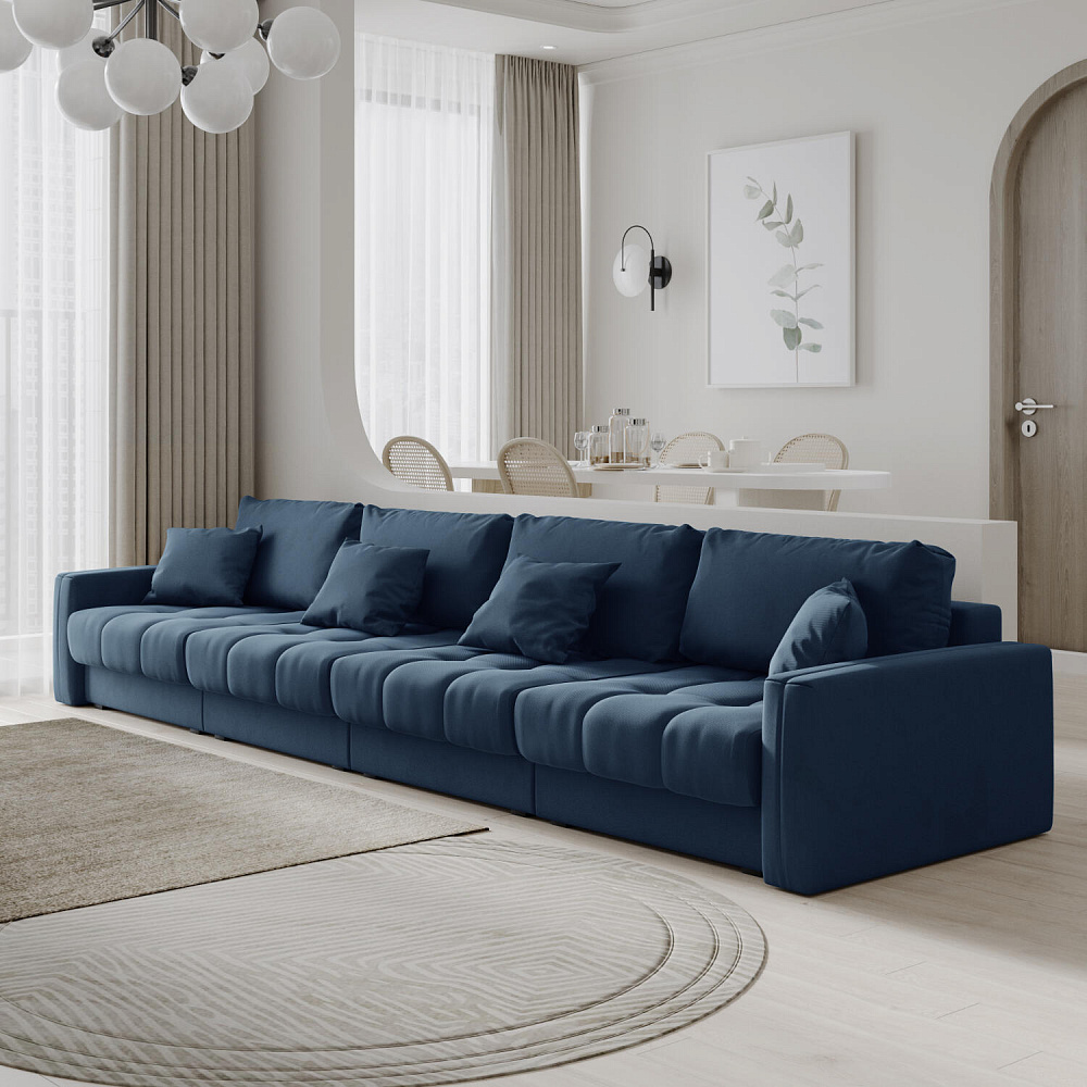 Диван «Дензел» — лучший вариант для ценителей комфорта в сочетании со стильным дизайном. Диван обладает глубокой посадкой, а приспинные и декоративные подушки позволят создать самое удобное место для отдыха. Спинка дивана выполнена в той же обивке, что и основная часть, что даёт возможность использовать диван для зонирования комнаты.