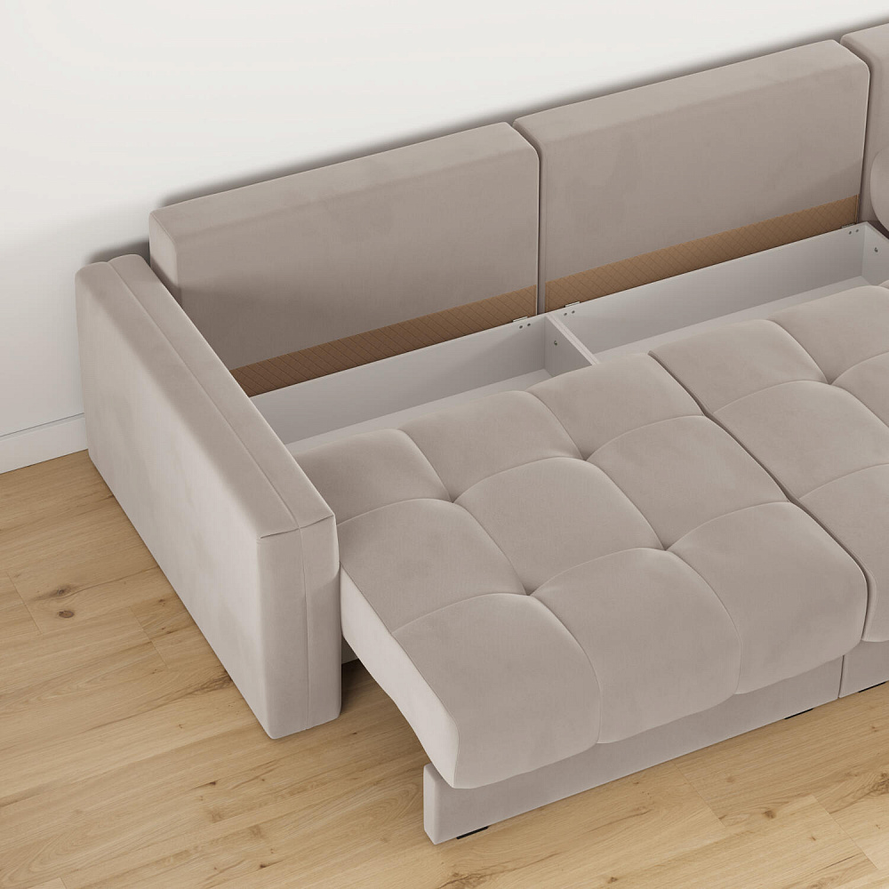 - Размер спального места — 300 х 167 см. Диван легко трансформируется в полноценное двуспальное место для сна и отдыха двух человек.