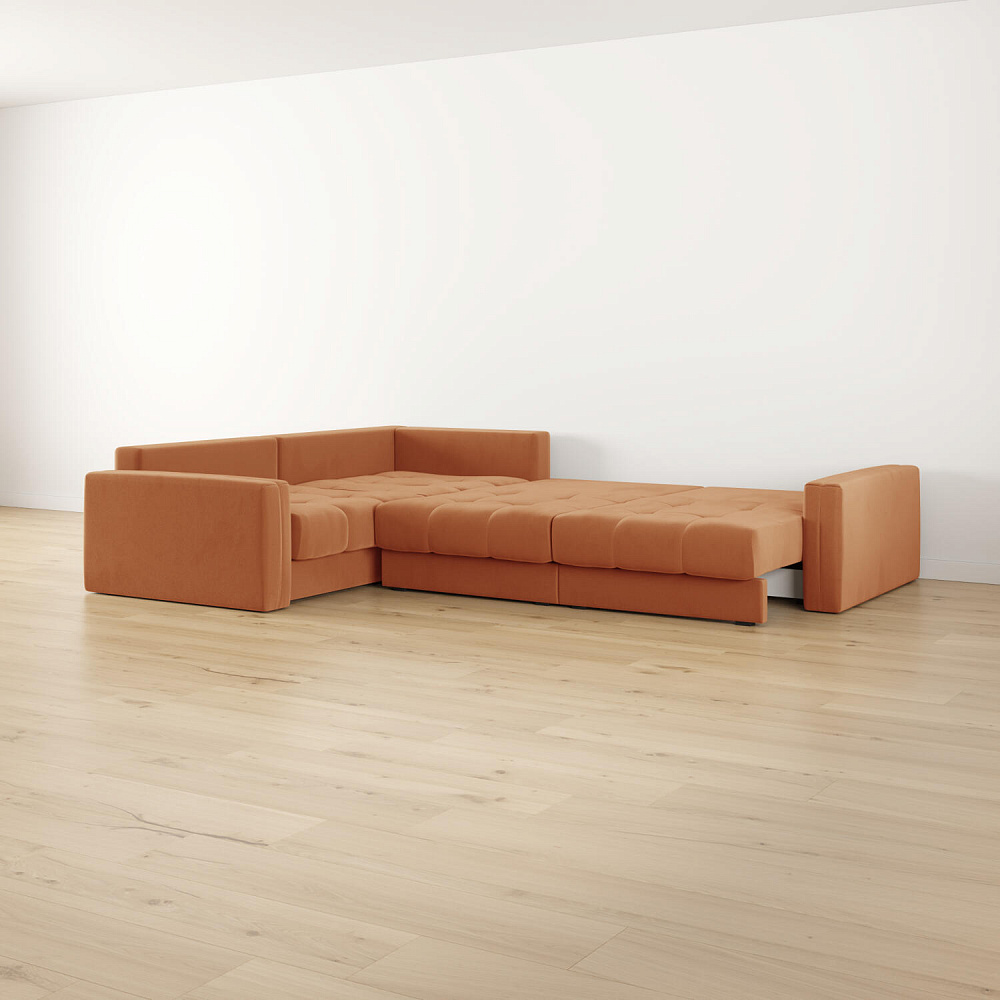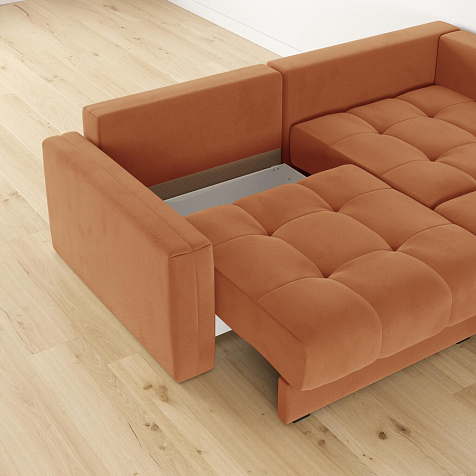 - Размер спального места — 300 х 160 см. Диван легко трансформируется в полноценное двуспальное место.