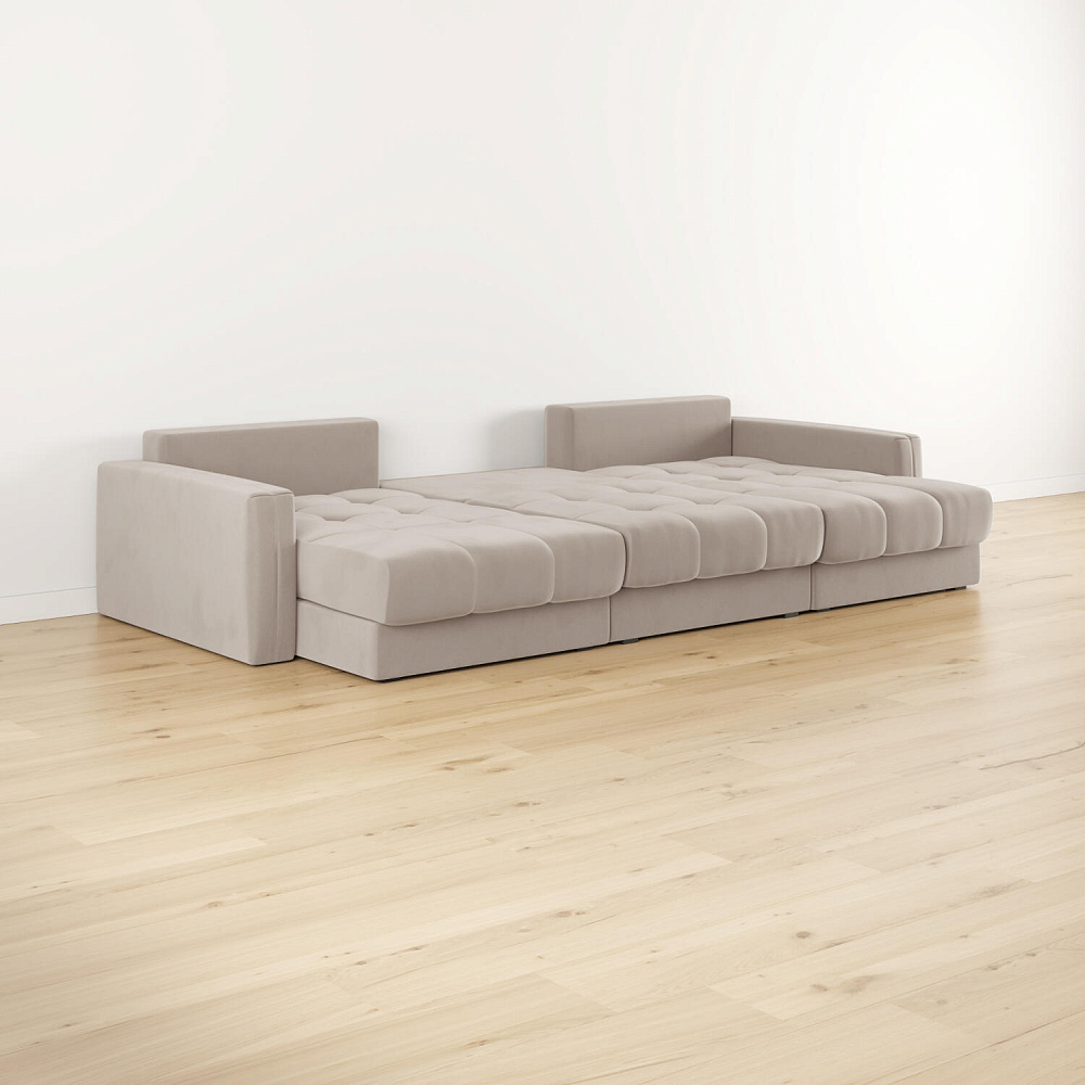 - Размер спального места — 300 х 147 см. Диван легко трансформируется в широкое спальное место для комфортного сна и отдыха двух человек.