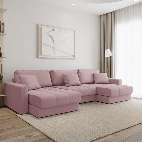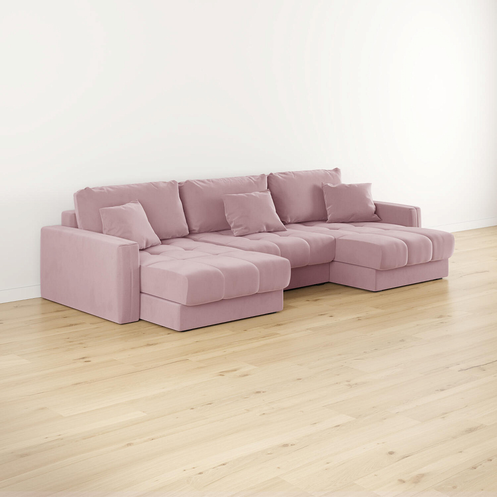 П-образный угловой диван «Дензел» — лучший вариант для ценителей комфорта и удобства в сочетании со стильным дизайном. Диван обладает глубокой посадкой, а приспинные и декоративные подушки позволят создать удобное место для отдыха. Угловая модель с двумя оттоманками займёт своё идеальное место в пространстве комнаты или студии. Спинка модели выполнена в обивочной ткани, что даёт возможность использовать диван для зонирования комнаты.