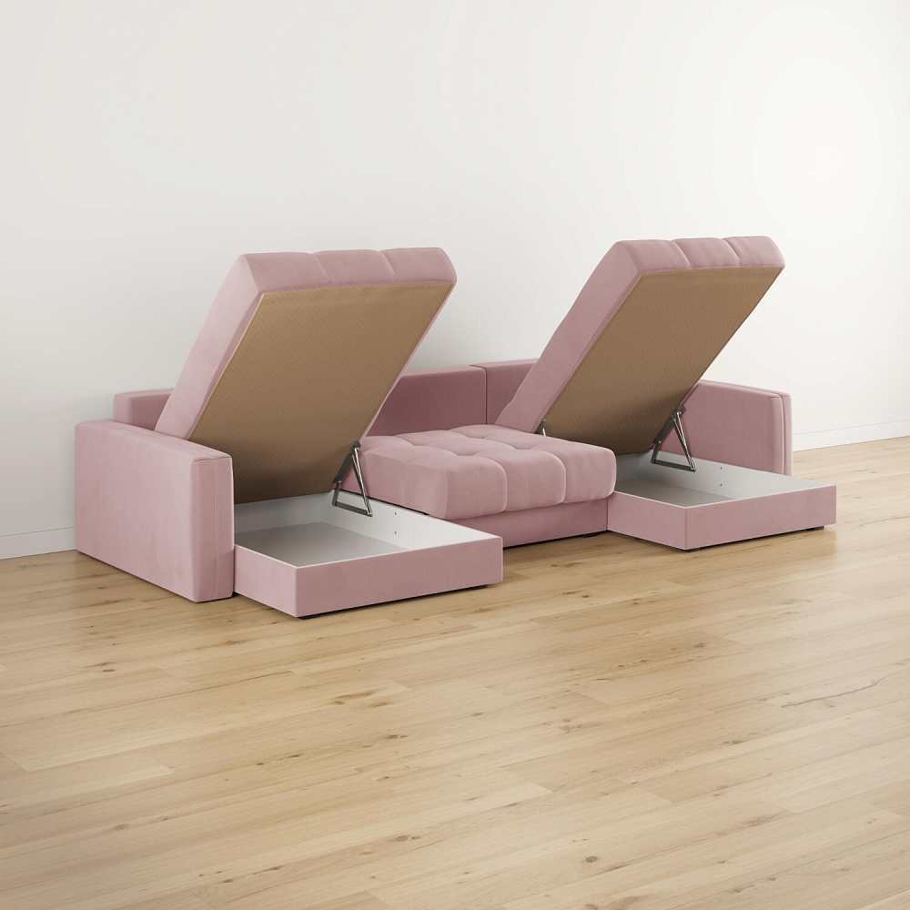 - Коробы для хранения. В диванной секции и шезлонгах предусмотрены вместительные отделения для хранения постельного белья и других вещей.