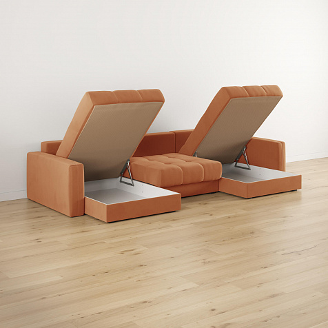 - Коробы для хранения. В диванной секции и шезлонгах предусмотрены вместительные отделения для хранения постельного белья и других вещей.