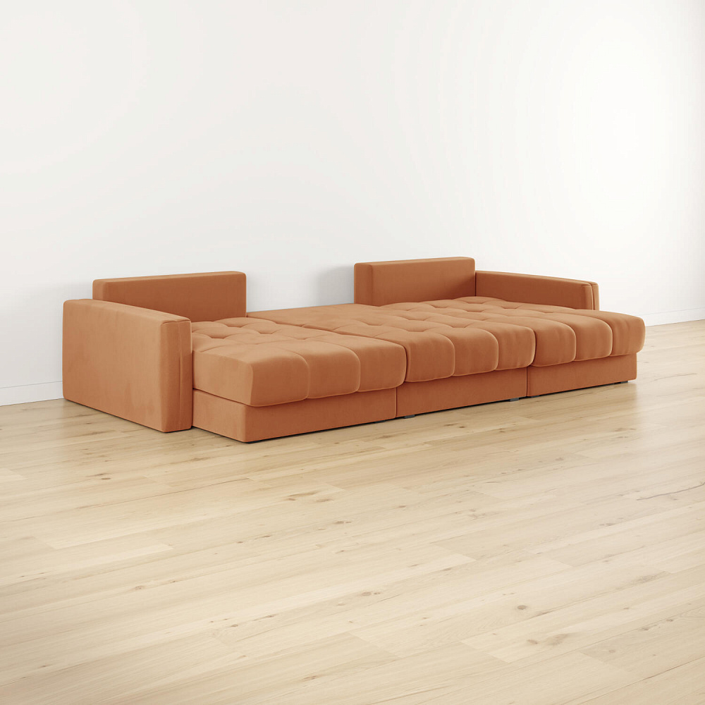 - Размер спального места — 300 х 147 см. Диван легко трансформируется в широкое спальное место для комфортного сна и отдыха двух человек.