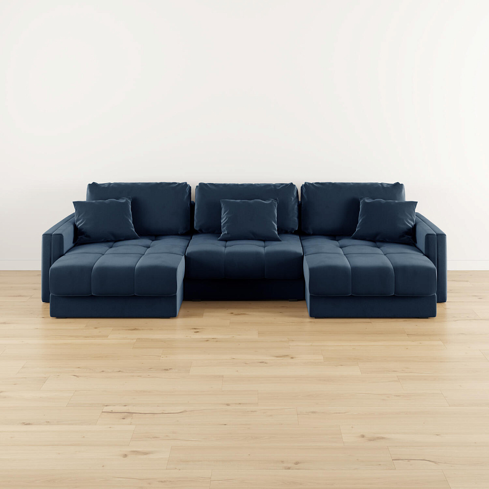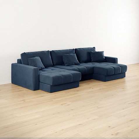 П-образный угловой диван «Дензел» — лучший вариант для ценителей комфорта и удобства в сочетании со стильным дизайном. Диван обладает глубокой посадкой, а приспинные и декоративные подушки позволят создать удобное место для отдыха. Угловая модель с двумя оттоманками займёт своё идеальное место в пространстве комнаты или студии. Спинка модели выполнена в обивочной ткани, что даёт возможность использовать диван для зонирования комнаты.