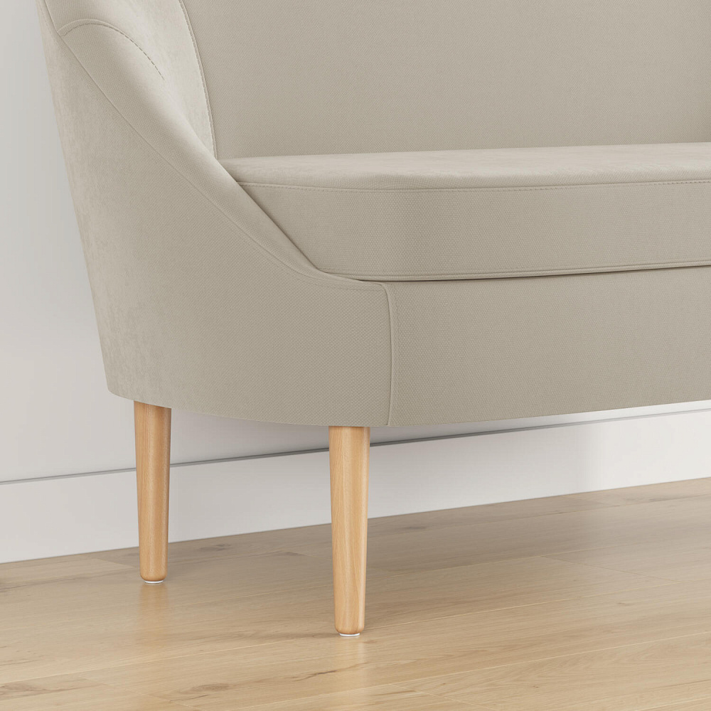 Высокие опоры из натурального дерева визуально облегчают конструкцию и упрощают процесс уборки. Под диваном легко пройдет любой робот-пылесос.
