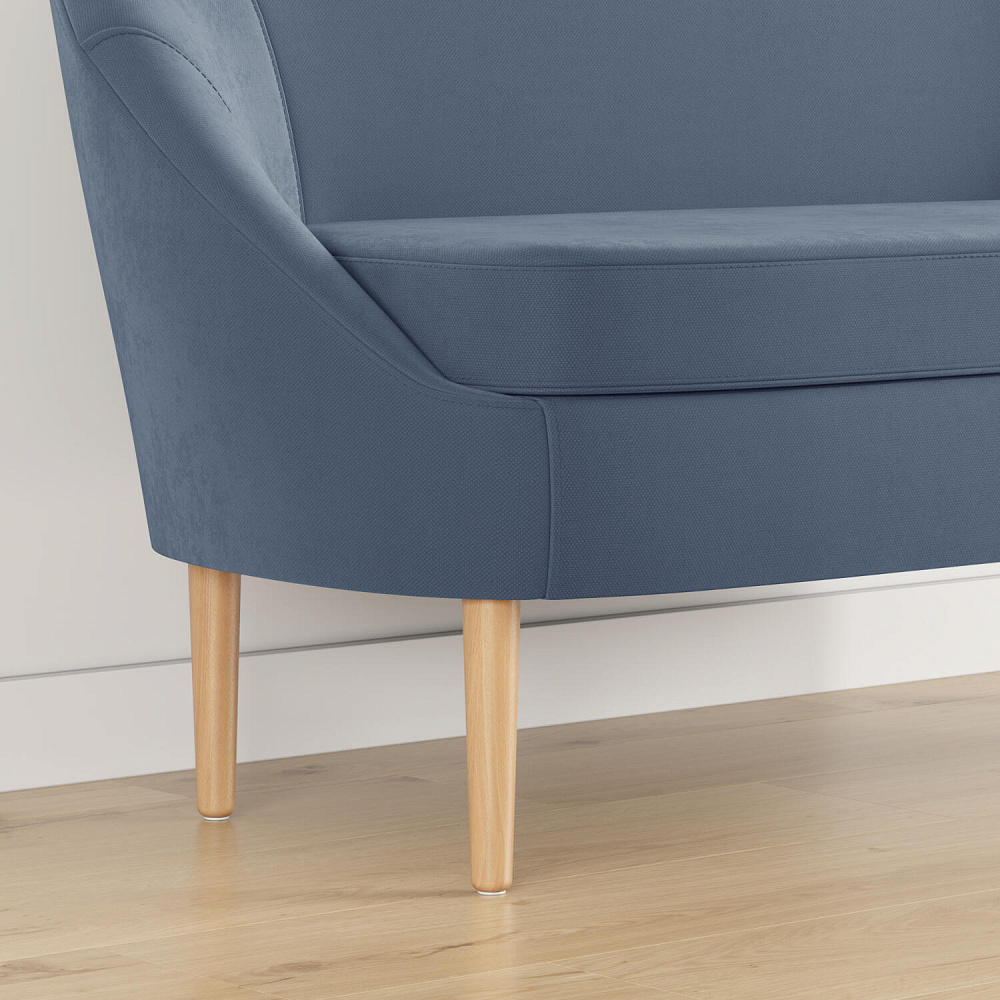 Высокие опоры из натурального дерева визуально облегчают конструкцию и упрощают процесс уборки. Под диваном легко пройдет любой робот-пылесос.