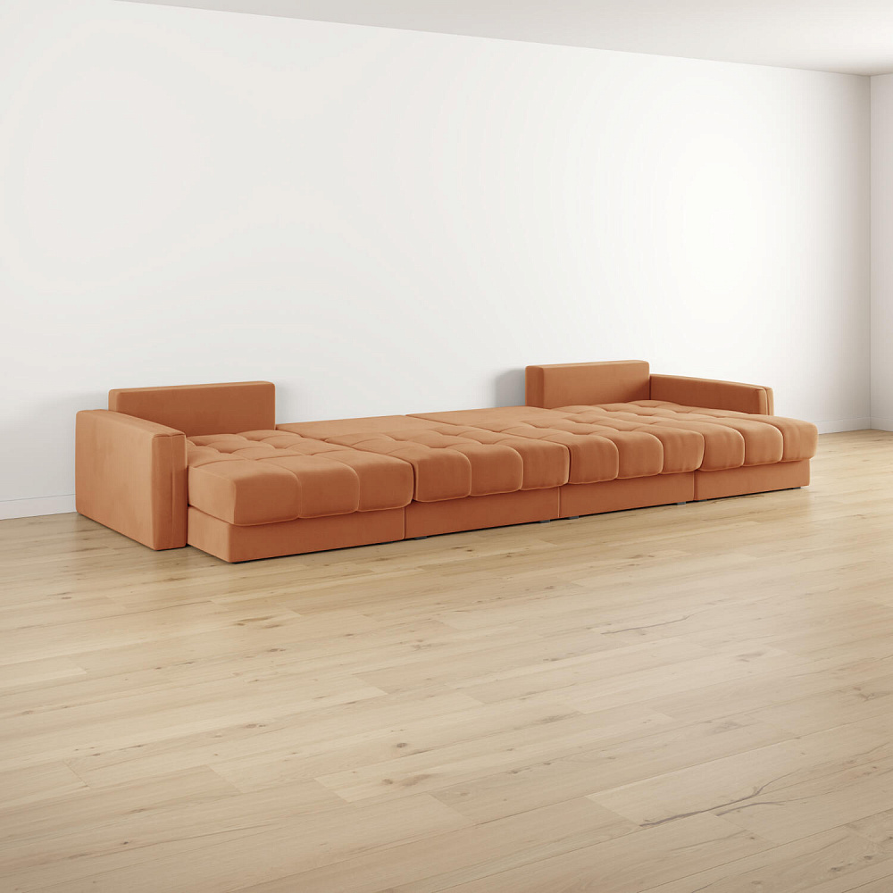 - Размер спального места — 400 х 167 см. Диван легко трансформируется в широкое спальное место для комфортного сна и отдыха двух человек.
