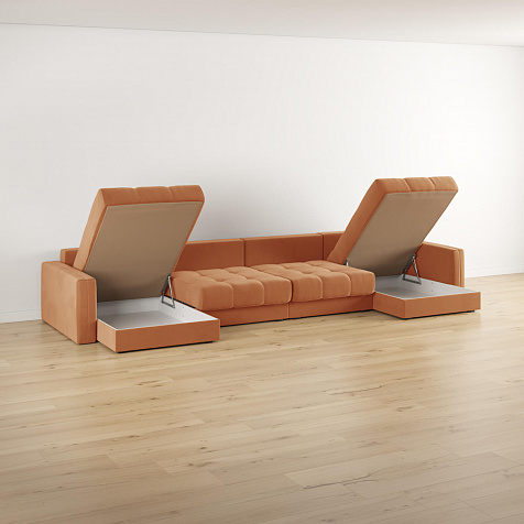 - Коробы для белья. В диванной секции и оттоманках предусмотрены просторные отделения для хранения постельного белья и других вещей.