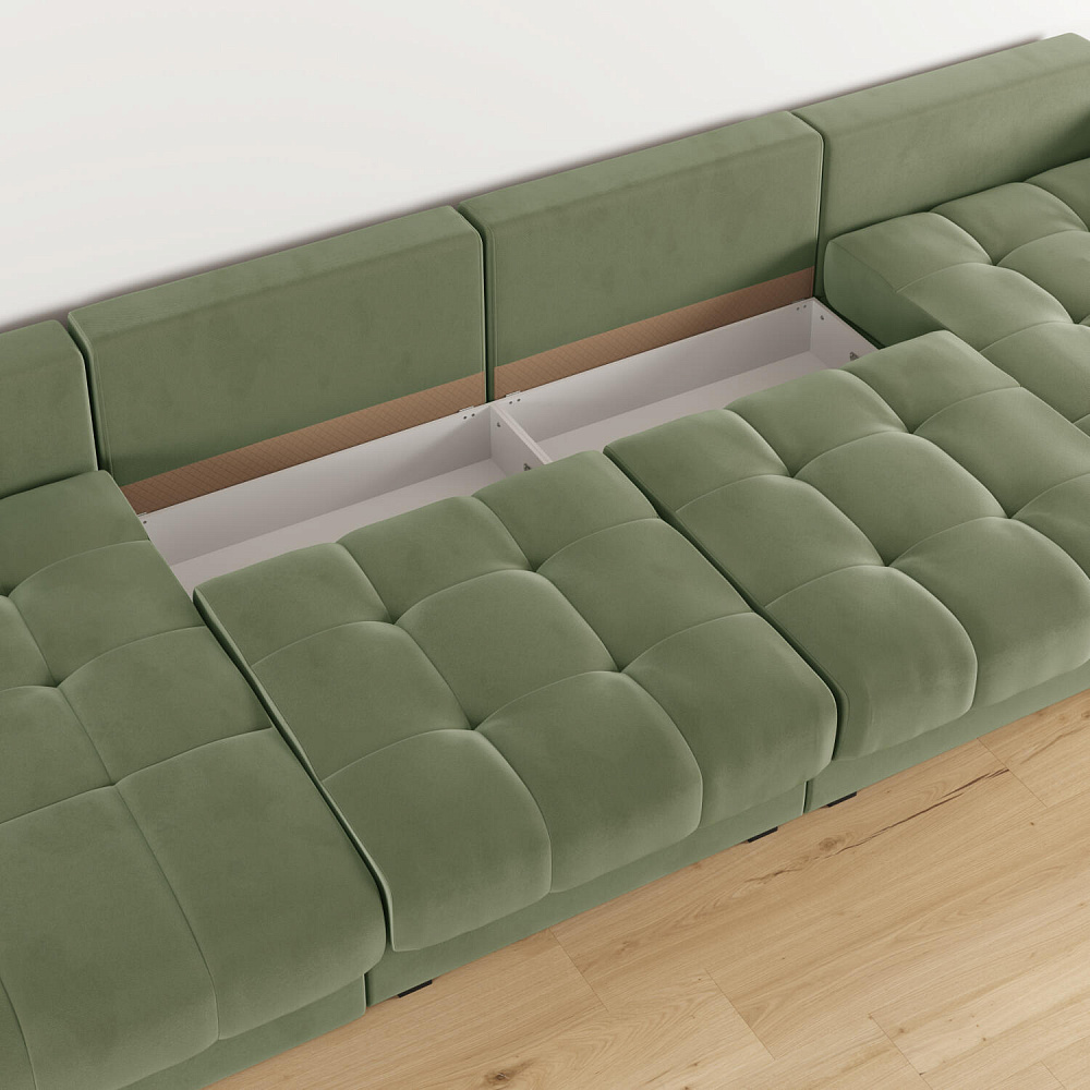 - Коробы для белья. В диванной секции и оттоманках предусмотрены просторные отделения для хранения постельного белья и других вещей.