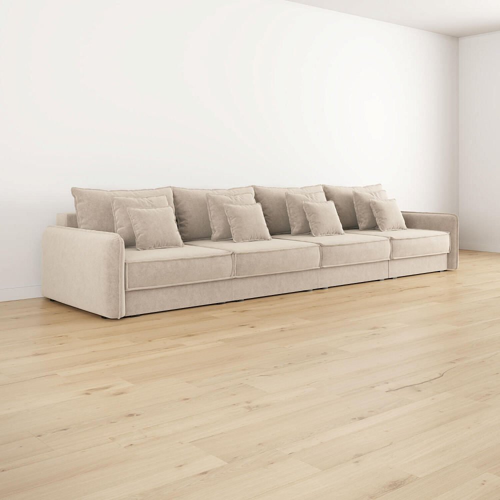 - 12 подушек в комплекте. 4 приспинных и 8 декоративных подушек разных размеров позволят скорректировать глубину посадки.